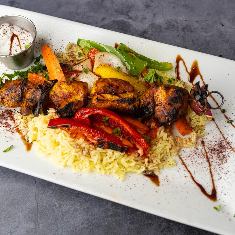 Tender cubes of marinated chicken grilled to perfection, served with cucumber yogurt sauce.