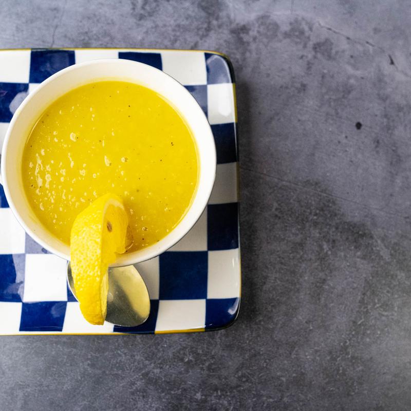 Red lentil seasoned with saffron, curry, cumin and lemon.